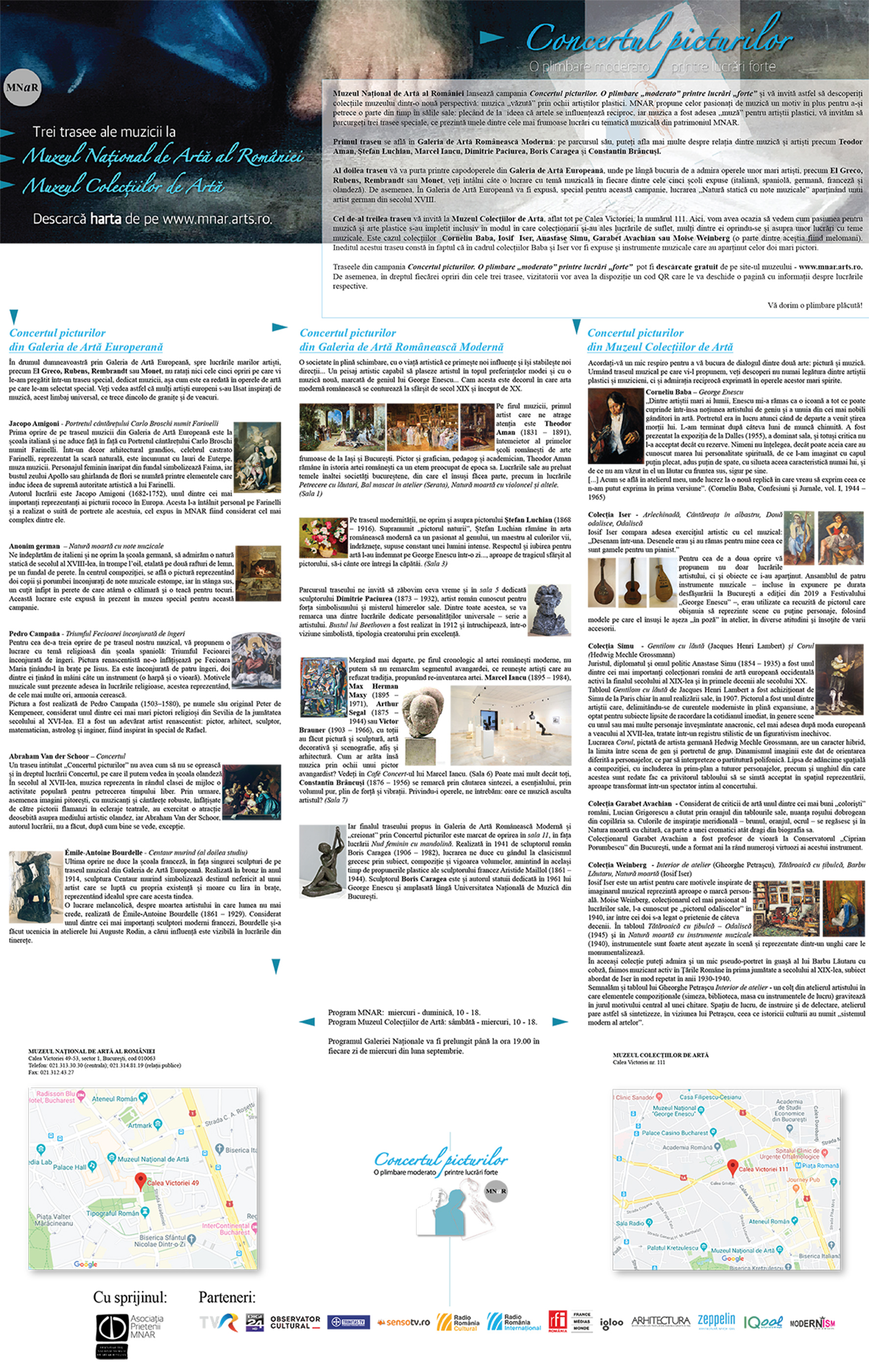 În drumul dumneavoastră prin Galeria de Artă Europeană, spre lucrările marilor artiști, precum El Greco, Rubens, Rembrandt sau Monet, nu ratați nici cele cinci opriri pe care vi le-am pregătit într-un traseu special, dedicat muzicii, așa cum este ea redată în operele de artă pe care le-am selectat special. Veți vedea astfel că mulți artiști europeni s-au lăsat inspirați de muzică, acest limbaj universal, ce trece dincolo de granițe și de veacuri.