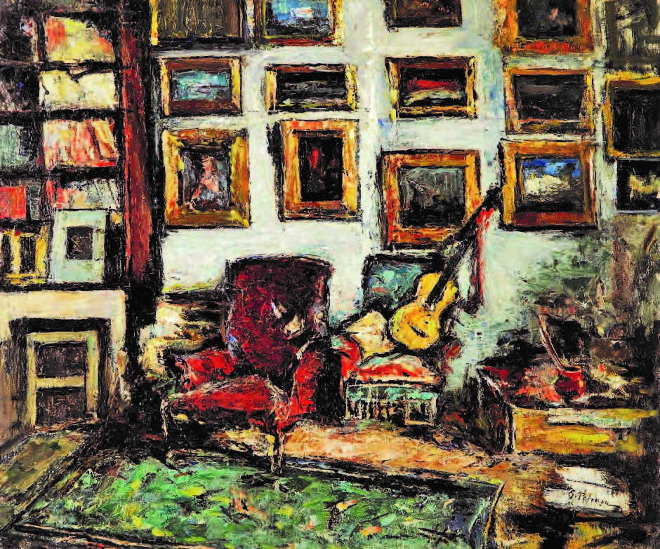 Semnalăm și tabloul lui Gheorghe Petrașcu Interior de atelier - un colţ din atelierul artistului în care elementele compoziţionale (simeza, biblioteca, masa cu instrumentele de lucru) gravitează în jurul motivului central al unei chitare. Spaţiu de lucru, de instruire şi de delectare, atelierul pare astfel să sintetizeze, în viziunea lui Petraşcu, ceea ce istoricii culturii au numit „sistemul modern al artelor”.