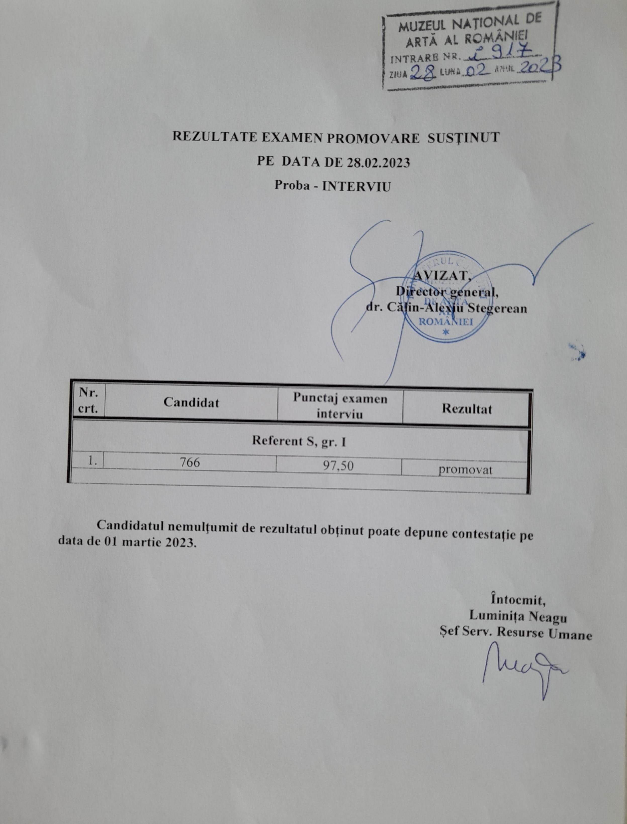 Rezultate concurs probă interviu 26.05.2023